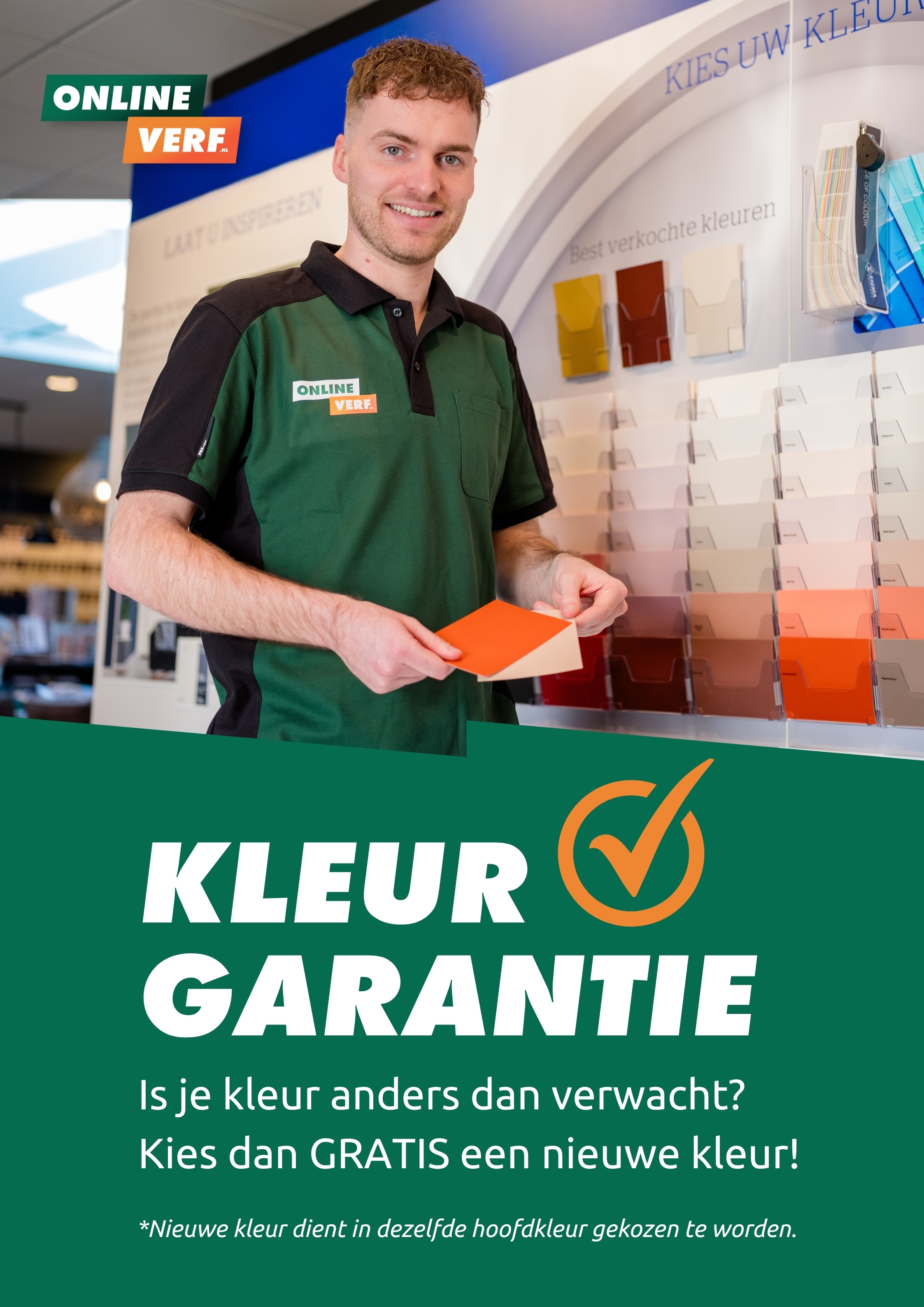 Het kiezen van de perfecte verfkleur is soms lastig. De gekozen kleur kan op de muur kan net anders uitpakken dan je had verwacht. Hij is bijvoorbeeld net iets te donker of juist te licht. Wat nu!? Geen zorgen: dankzij onze kleurgarantie kun je de kleur eenmalig kosteloos omruilen voor een andere tint binnen dezelfde hoofdkleur. Zo weet je zeker dat je tevreden bent met het eindresultaat. Lees hieronder wat de voorwaarden zijn en hoe het werkt.